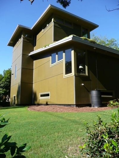Eden House, Atlanta GA. A new home certified LEED Gold and Earthcraft Gold Home. Features include a green roof and solar water heating.
